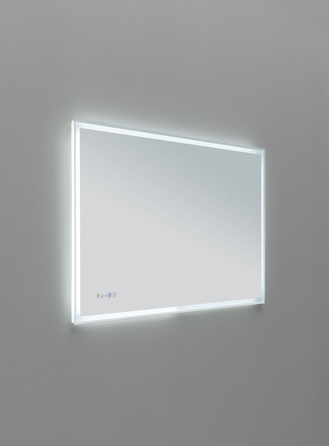 Удобство использования достигается за и счет сенсорного управления. Больше не нужно возвращаться к выключателю на входе в помещение — достаточно коснуться поверхности, и зеркалом можно пользоваться. На фронтальной панели отображаются часы. Модель в равной степени подойдет как для ванной комнаты, так и для прихожей или обустройства косметического столика. Благодаря уникальной толщине 20 мм ее практически не видно на поверхности стены.