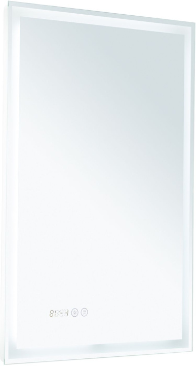 Удобство использования достигается за и счет сенсорного управления. Больше не нужно возвращаться к выключателю на входе в помещение — достаточно коснуться поверхности, и зеркалом можно пользоваться. На фронтальной панели отображаются часы. Модель в равной степени подойдет как для ванной комнаты, так и для прихожей или обустройства косметического столика. Благодаря уникальной толщине 20 мм ее практически не видно на поверхности стены.