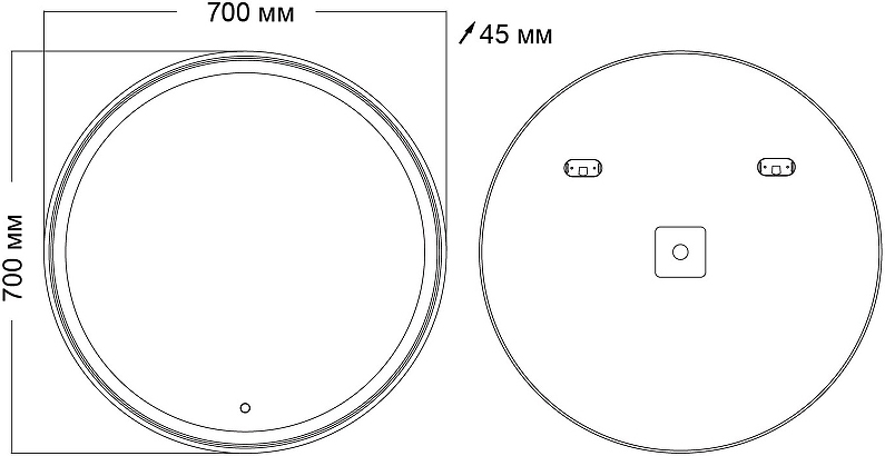| Оснащение | крепления, зеркало с подсветкой, сенсорный выключатель |