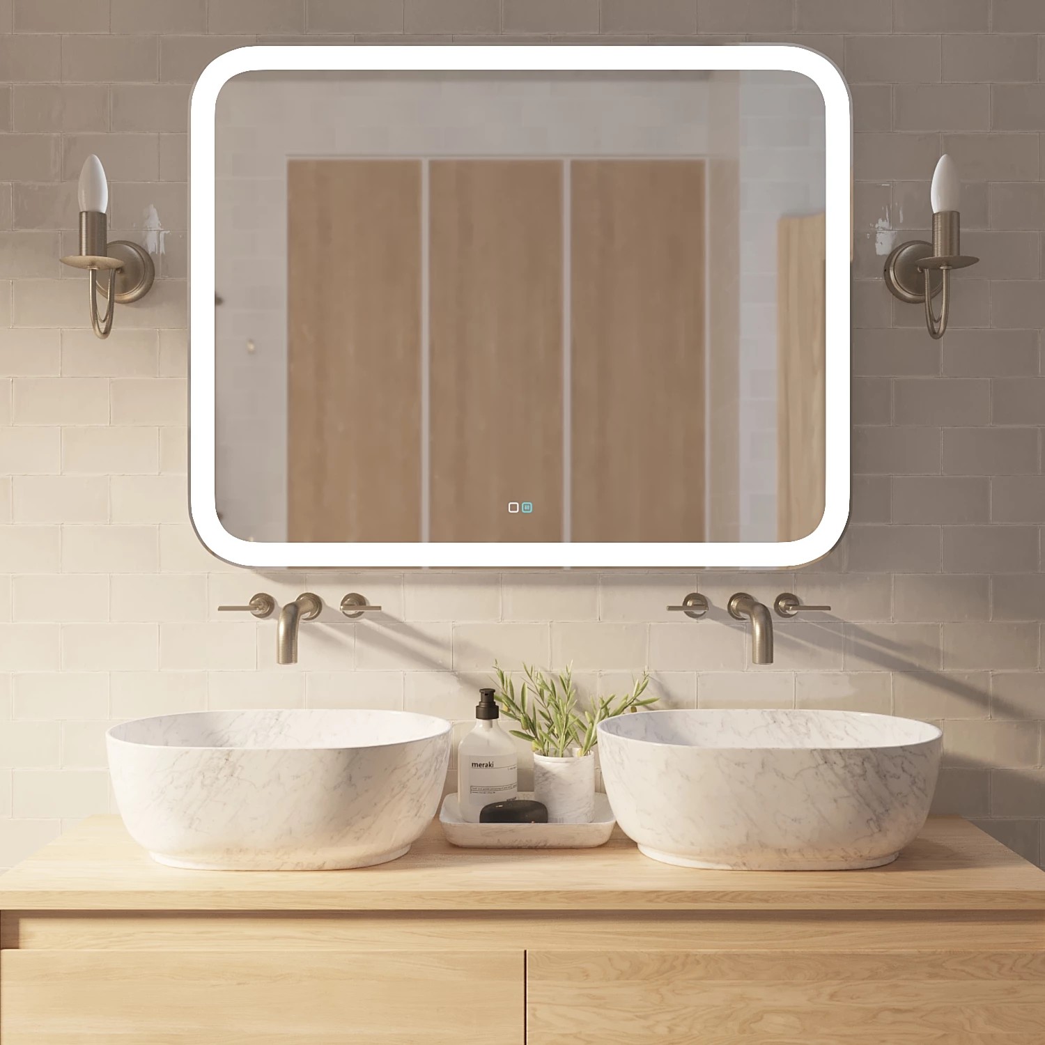 | Оснащение | крепления, антизапотеватель, регулируемая подсветка, сенсорный выключатель |