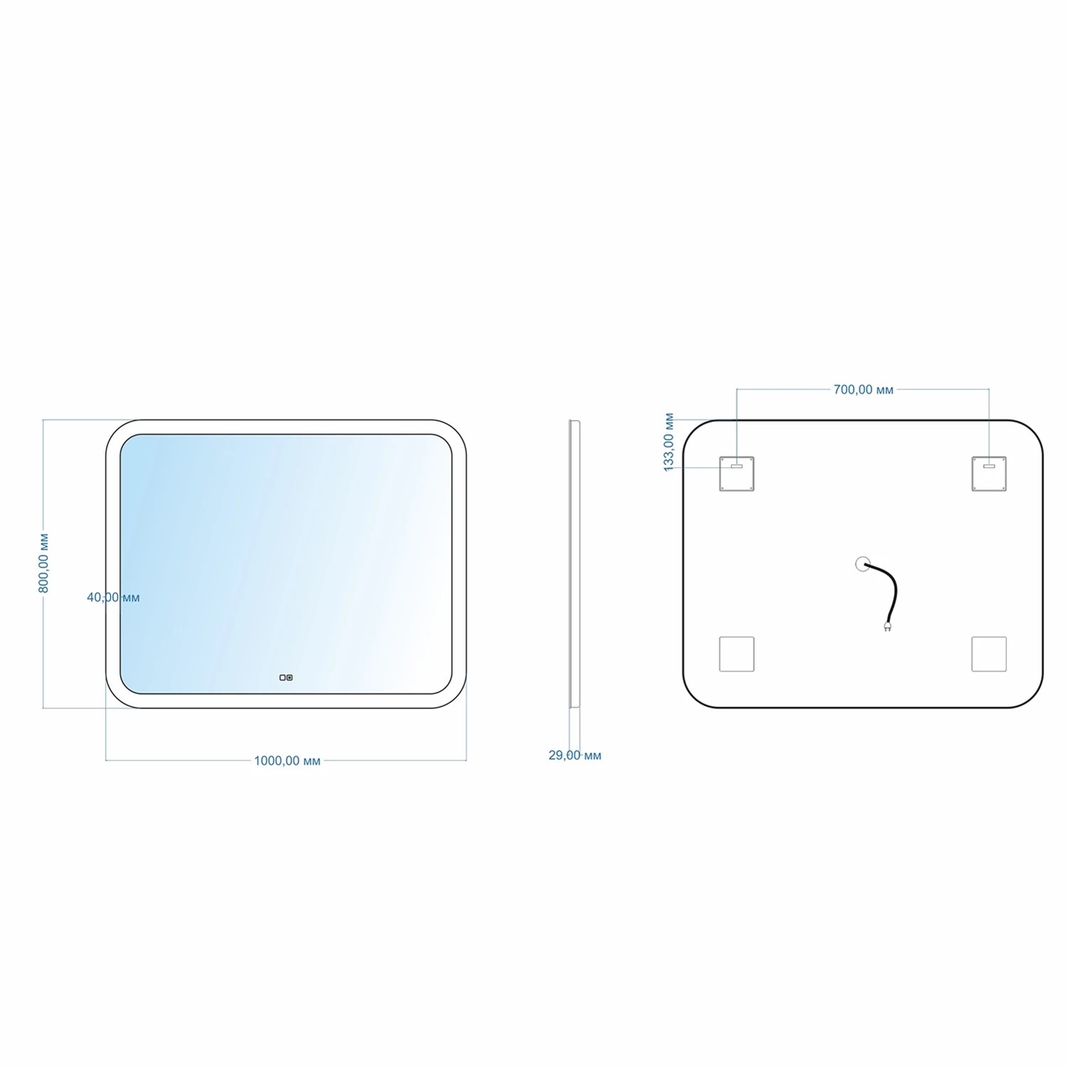 - Зеркало влагостойкое и защищено от попадания случайных брызг и капель воды