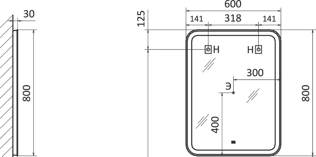 - Матированная кромка с LED подсветкой по периметру зеркала обеспечивает дополнительный источник света при тусклом общем освещении в интерьере.