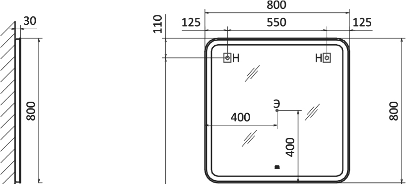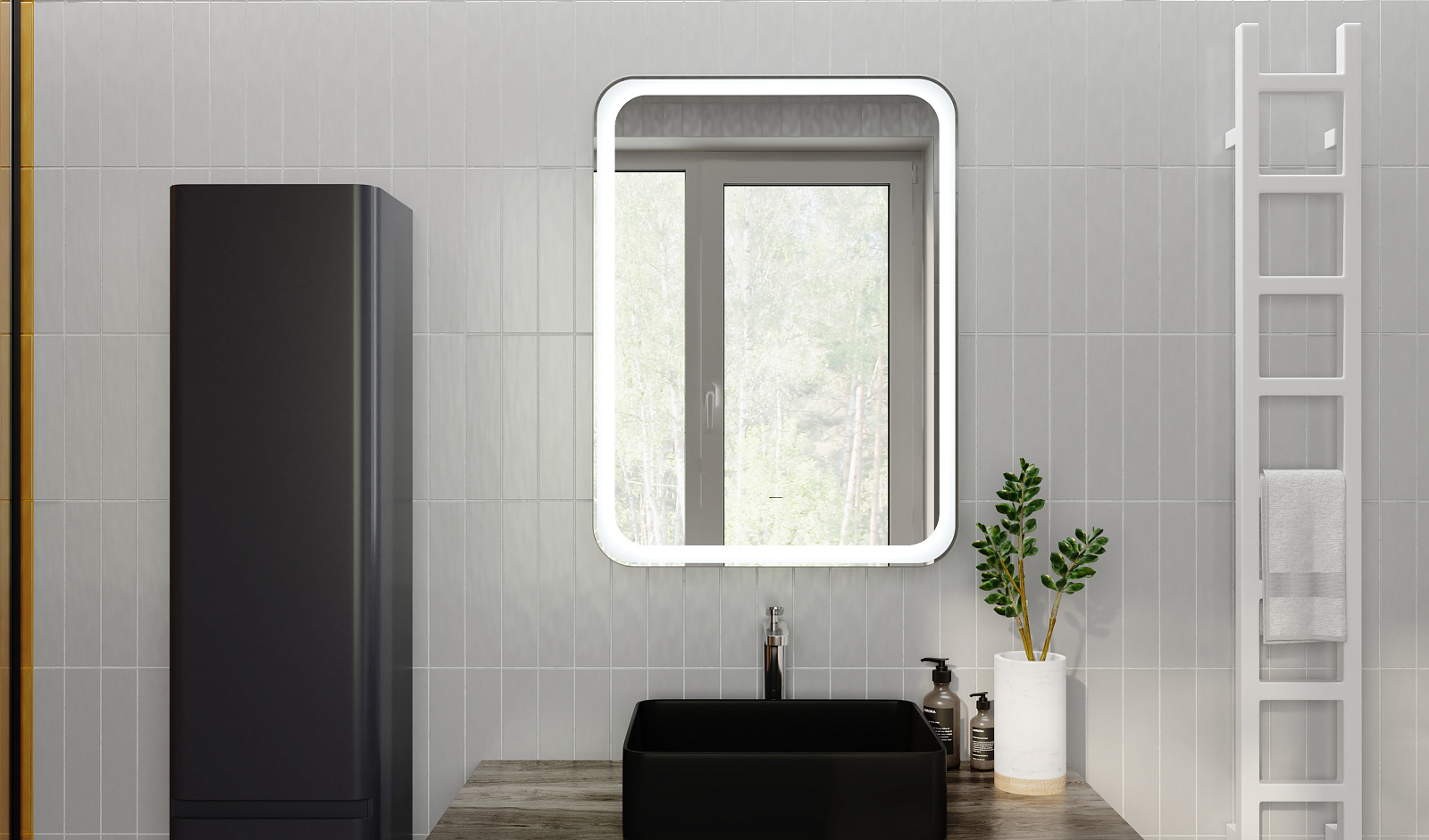 - Матированная кромка с LED подсветкой по периметру зеркала обеспечивает дополнительный источник света при тусклом общем освещении в интерьере.