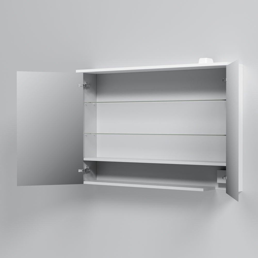 AM.PM Spirit V2.0 101 (M70AMCX1001WG) - шкаф с двумя зеркальными дверцами. Отличается приятным дизайном, а также практичностью и функциональностью. Особенность в виде внутренней LED подсветки добавляет освещенности во время использования различных принадлежностей. Функция открывания двери одним нажатием push-to-open избавляет от выступающих частей в виде ручек. Наличие доводчиков в дверцах делает закрывание и открывание мягким.