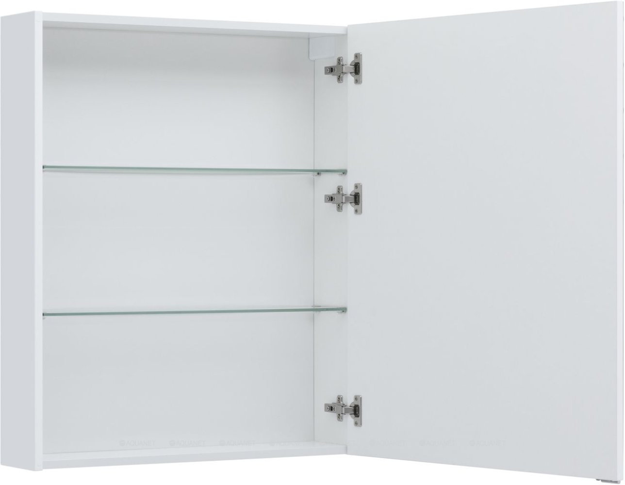 Зеркальный шкаф Aquanet «Алвита» New 70 в белом матовом цвете. Корпус изготовлен из ЛДСП, устойчивой к эксплуатации в условиях высокой влажности. Фасады выполнены из МДФ. Дверца оснащена доводчиком, обеспечивающим плавность и бесшумность закрывания. Внутреннее пространство используют как дополнительное место хранения для небольших предметов — ватных палочек и спонжей, бритвы и зубных щеток. На тыльной стороне предусмотрены места для установки монтажных пластин.