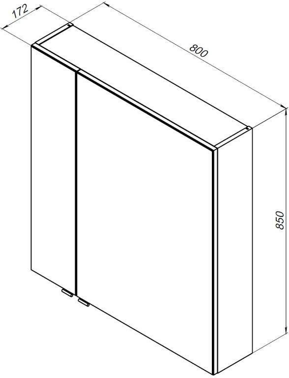 Модель подвесного типа. На тыльной стороне предусмотрены места для установки монтажных пластин. Размеры — 800х172х850 мм. Шкаф в стиле модерн органично дополнит дизайн ванной комнаты или санузла. Для ухода используют влажную мягкую ткань и средства бытовой химии без абразивных частиц.