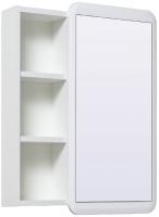 - Зеркальный шкаф без подсветки с одной распашной дверкой и открытыми полками (слева или справа, зависит от установки).